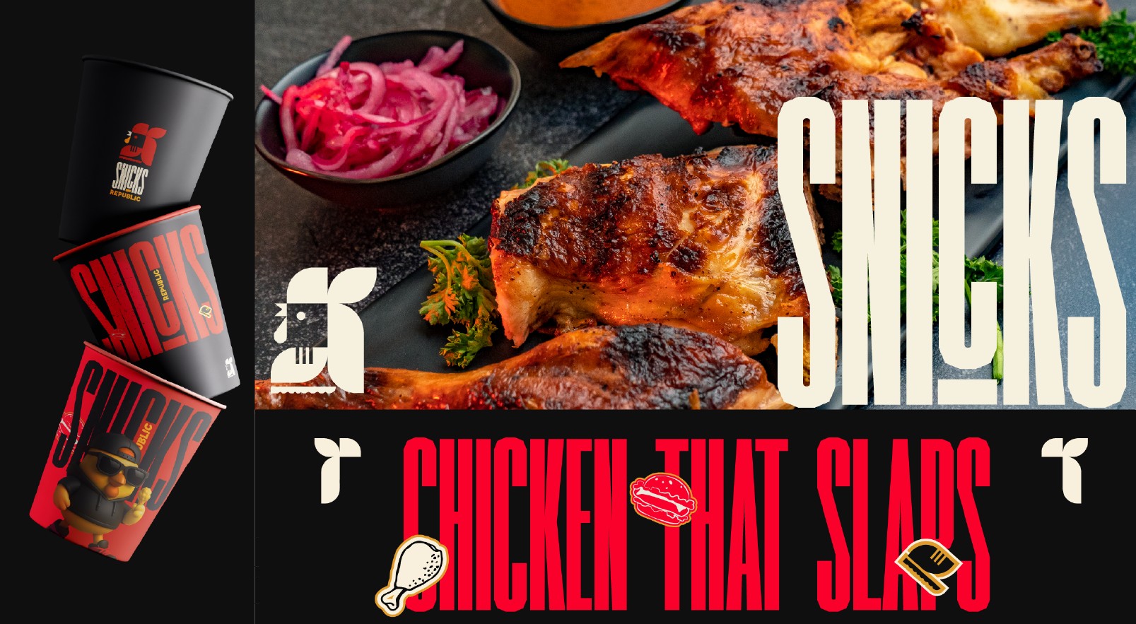 在一個食品品牌往往過度包裝或缺乏個性的市場中,Snicks 以真實和態度脫穎而出。這不僅關乎快餐,更是一場成熟的文化表達。從標志到炸雞桶,從吉祥物到那句響亮的口號“Chicken tha Slaps”——每一處細節都致力于構建一個自信十足、個性鮮明的品牌世界。Snicks 代表的是街頭炸雞的頂級形態:快速、上癮、有態度,既屬于街頭,也屬于餐桌。
