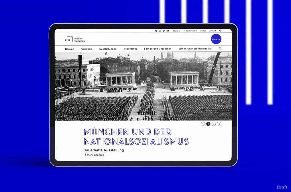 慕尼黑的 NS 文獻(xiàn)中心剛剛慶祝成立五周年。迄今為止,已有超過 750,000 名參觀者來到這座房子,它越來越關(guān)注我們這個(gè)時(shí)代的當(dāng)前問題和挑戰(zhàn)。記錄歷史的目標(biāo),但也讓它在情感上是有形的,是要得到一個(gè)新的企業(yè)設(shè)計(jì)的支持——在一項(xiàng)計(jì)劃了幾年的合作中,包括圖形和網(wǎng)頁(yè)設(shè)計(jì)、所有印刷品的開發(fā)和創(chuàng)作以及數(shù)字出版物。