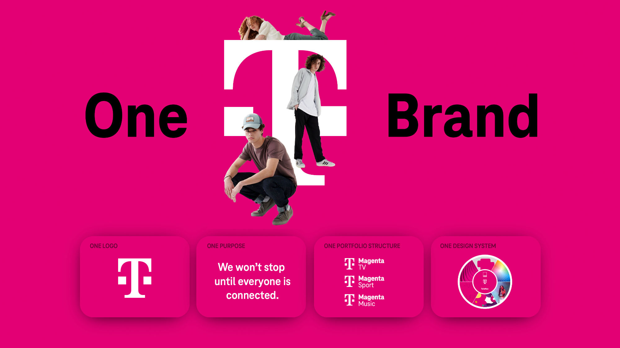 T標志,無論是兩位數還是四位數字,都是一個強烈的標志。一個更強大、更有價值的 Telekom 品牌資產是洋紅色。有趣的是,多年來,這種視覺核心元素也以產品名稱的形式出現在語言層面,見 MagentaTV 等。
