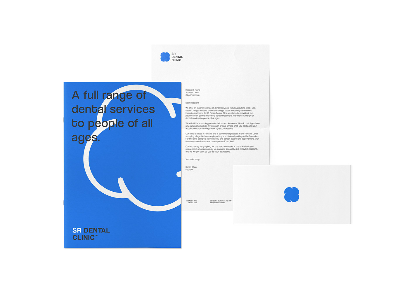 位于澳大利亞墨爾本的SR牙科診所的品牌設(shè)計項目。在保持“人們可以信任的身份”和“不會讓人感到緊張的身份”之間的平衡,以及“與牙齒有關(guān)的外觀”和“比牙齒形狀更具吸引力的外觀”之間的平衡方面,人們付出了大量努力。