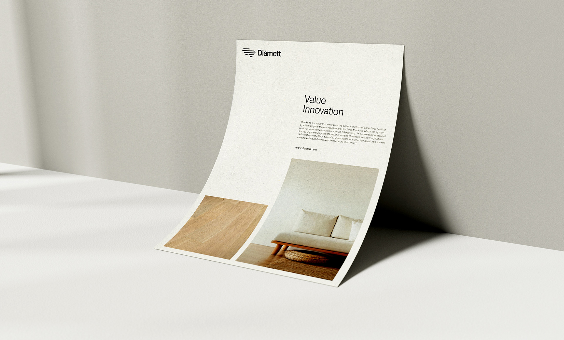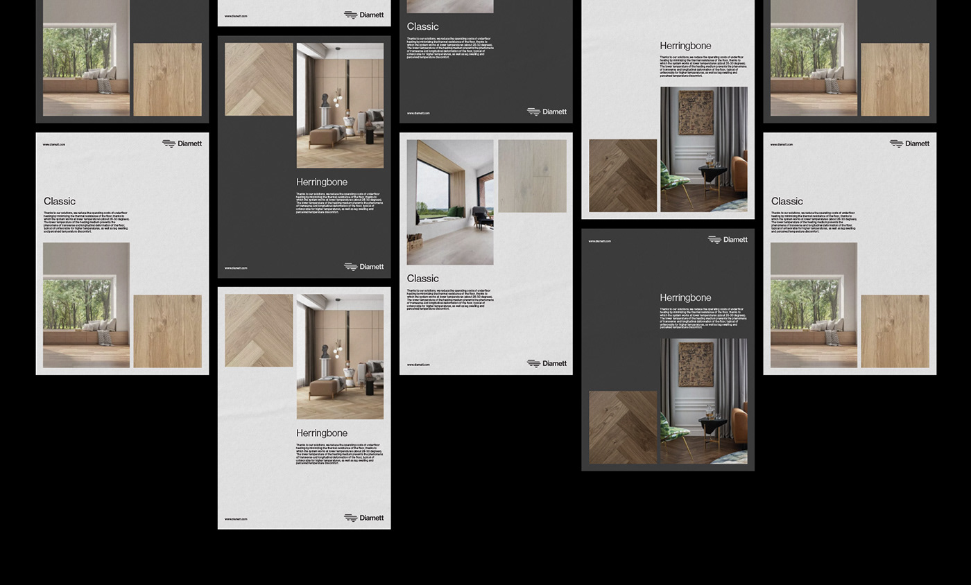家居行業Diamett地板制造商品牌設計:Diamett是一家高端地板制造商,憑借其名為“瑞典板”的專利解決方案,擁有無與倫比的性能。七毫米厚的高密度HDF芯和八層清漆覆蓋在木材單板上,結果是地板可以承受任何虐待,在顏色和結構上都具有自然的光潔度。該技術還具有環保效益,僅使用1/6平方米實木地板所需的木材,使直徑地板成為可持續發展的選擇,而不會影響質量。一個額外的優勢是地板的導熱率比常規層壓板高63.5%,這使得地板下供暖更有效,更節能。