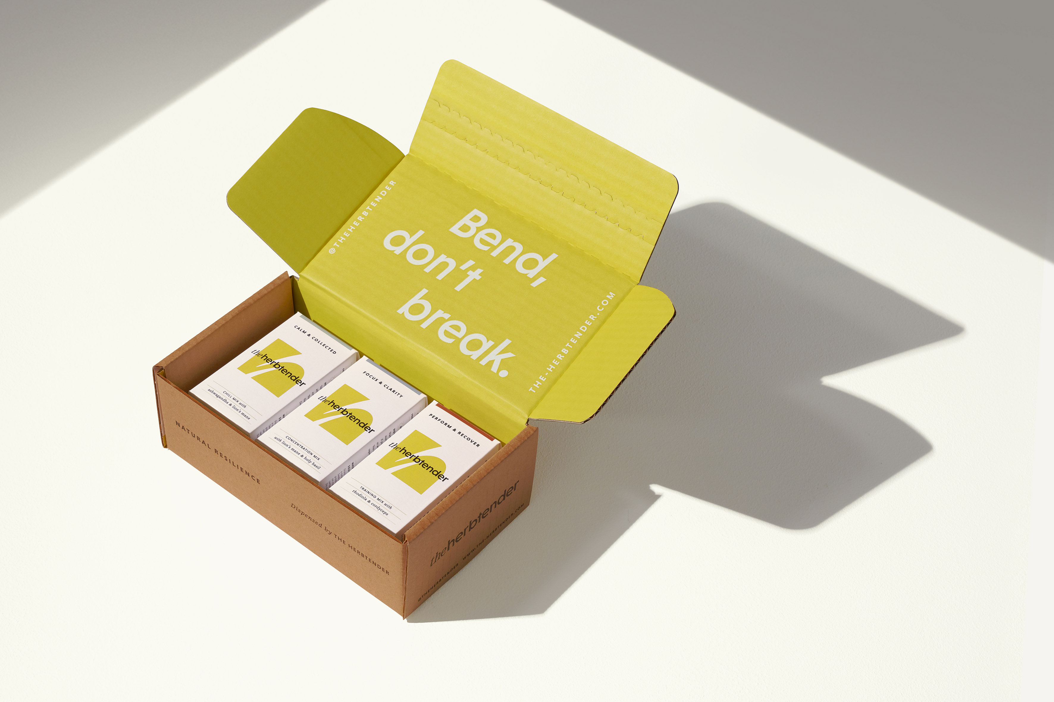 “彎曲不斷裂”的口號賦予了該品牌一個清晰的理念,即圍繞自然彈性的概念。Herbtender鼓勵人們擁抱生活,讓他們變得有韌性、自力更生,每天都變得更強大,而不是遵從社交媒體上流行的、但可能放縱的“自我護理”代碼,這些代碼尋求避免壓力。