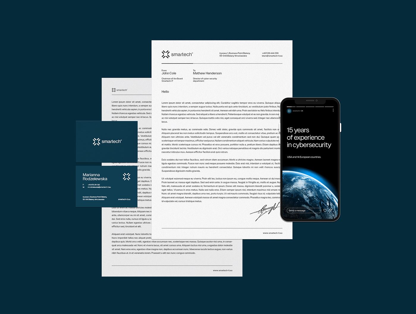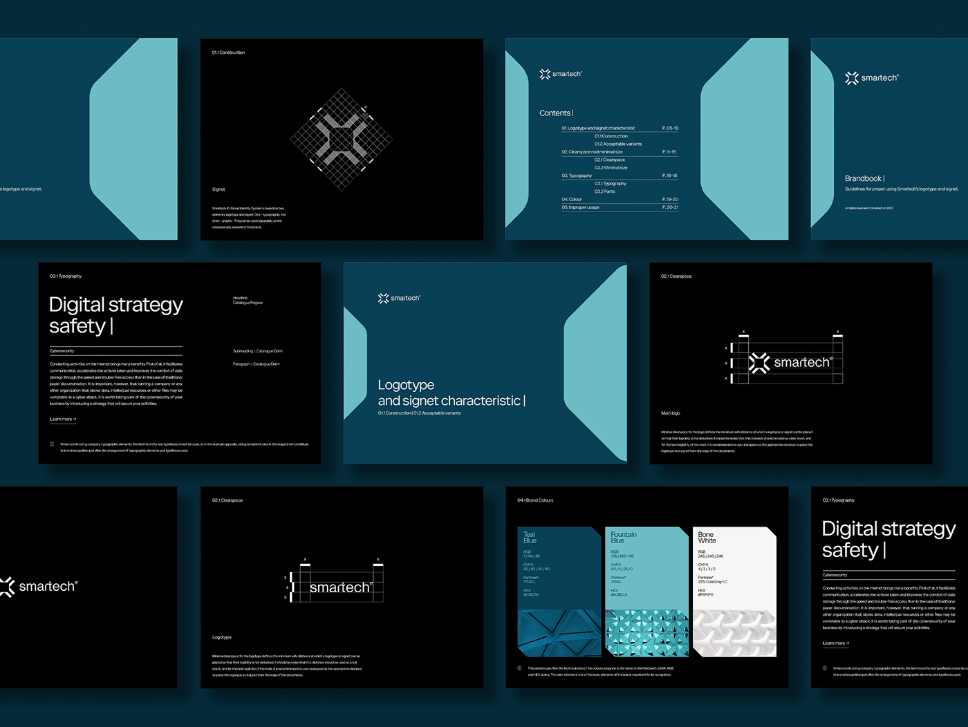 我們的任務是創建一個品牌VI設計,作為一家全球范圍的專業公司在數字世界中進行交流。我們決定了反映技術內涵的顏色和印章。使用key visual,我們希望將Smartech-it品牌的技術本質與該公司年輕團隊背后的專業精神和尋找it解決方案的現代性相結合。