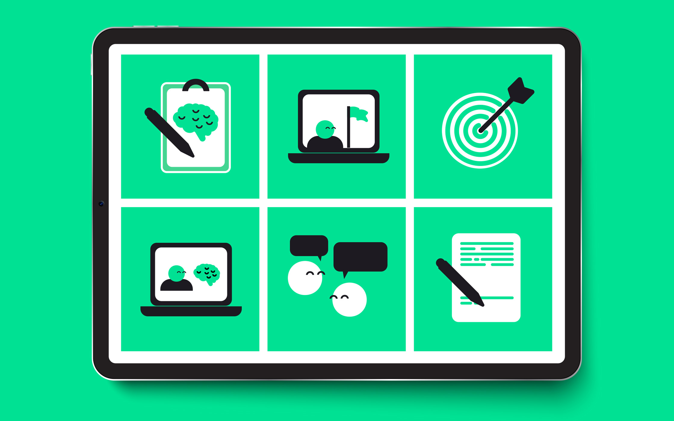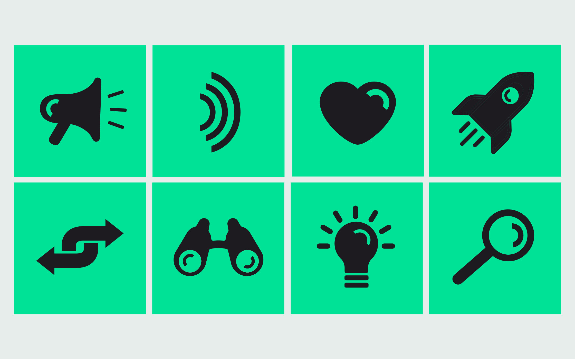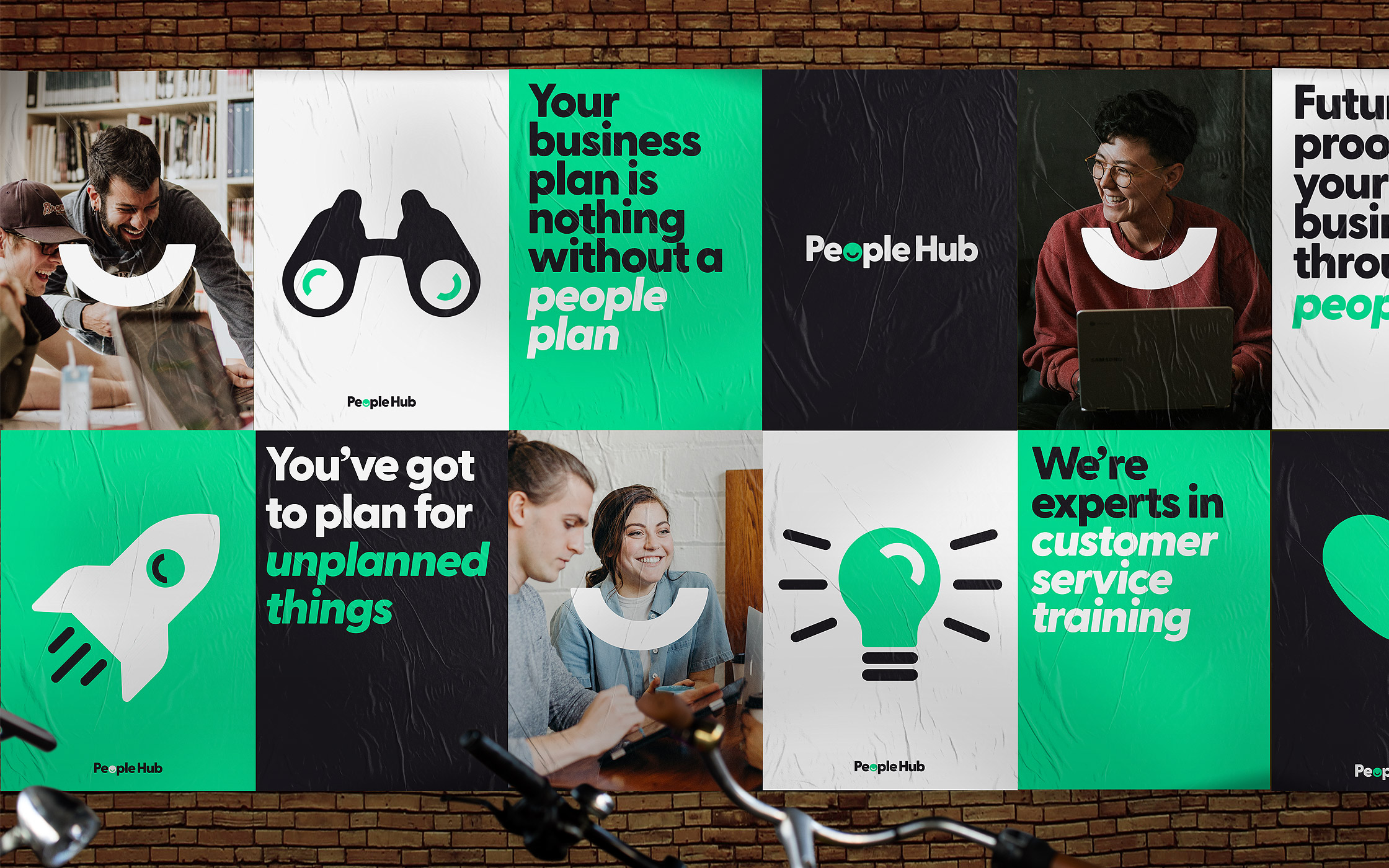 People Hub的復雜產品因其品牌而變得更加復雜,該品牌是色彩和明亮圖形的混合。我們決定剝離一切,將品牌集中在一種新鮮的綠色上,這有助于鞏固產品并為公司創造大膽的新外觀。引人注目的新圖形通過一系列插圖、圖標和視頻進行,有助于解釋服務和“樞紐”。該品牌已經與People Hub的驚人客戶(如Red Bull,Haribo和Google)一起陷入風暴。主徽標圖標具有一個簡單的微笑頭像,放置在人脈中心的“O”內。這是品牌的積極英雄,是快樂和敬業的員工隊伍的化身。然后,我們將微笑用作圖標上的圖形設備。