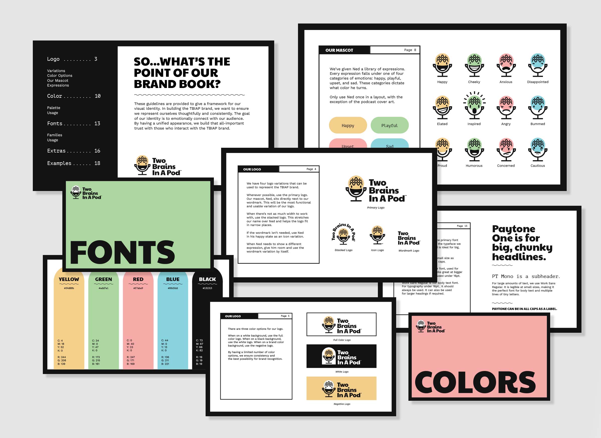 由于幕后操作在開始時規(guī)模很小,因此需要有簡單的結(jié)構(gòu)和品牌元素的使用。所有這些都被匯編成一本全面的品牌書。總體而言,《豆莢中的兩個大腦》具有捕捉他們愿景和心靈的視覺識別,同時對觀眾來說是與眾不同和過目難忘的。