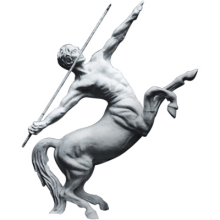 寓意和由來:在希臘神話中,人頭馬又稱為半人馬。在古希臘有個王國叫塞薩里亞國,國王是伊克西翁(戰(zhàn)神阿瑞斯與一凡女所生)。他因為有神的血緣關(guān)系,竟大膽地愛上了天后赫拉,并窮追不舍。天后為了躲避伊克西翁的追求,搖身一變化作一片祥云。伊克西翁不顧一切地撲了進去,結(jié)果在這片祥云里生下一個怪物:怪物上半身完全是個人,有頭、眼、鼻、耳、口、雙臂和雙手,而下半身則是馬,有四條腿和馬身馬尾。希臘語叫 肯達夫羅斯 ,中文譯作人頭馬。他們一般被描寫為粗野、狂暴和不講道理。一般他們被作為野蠻的代表,與人相反,但也有少數(shù)(如凱隆)是非常有知識和有教養(yǎng)的,半人馬總是帶著弓箭。